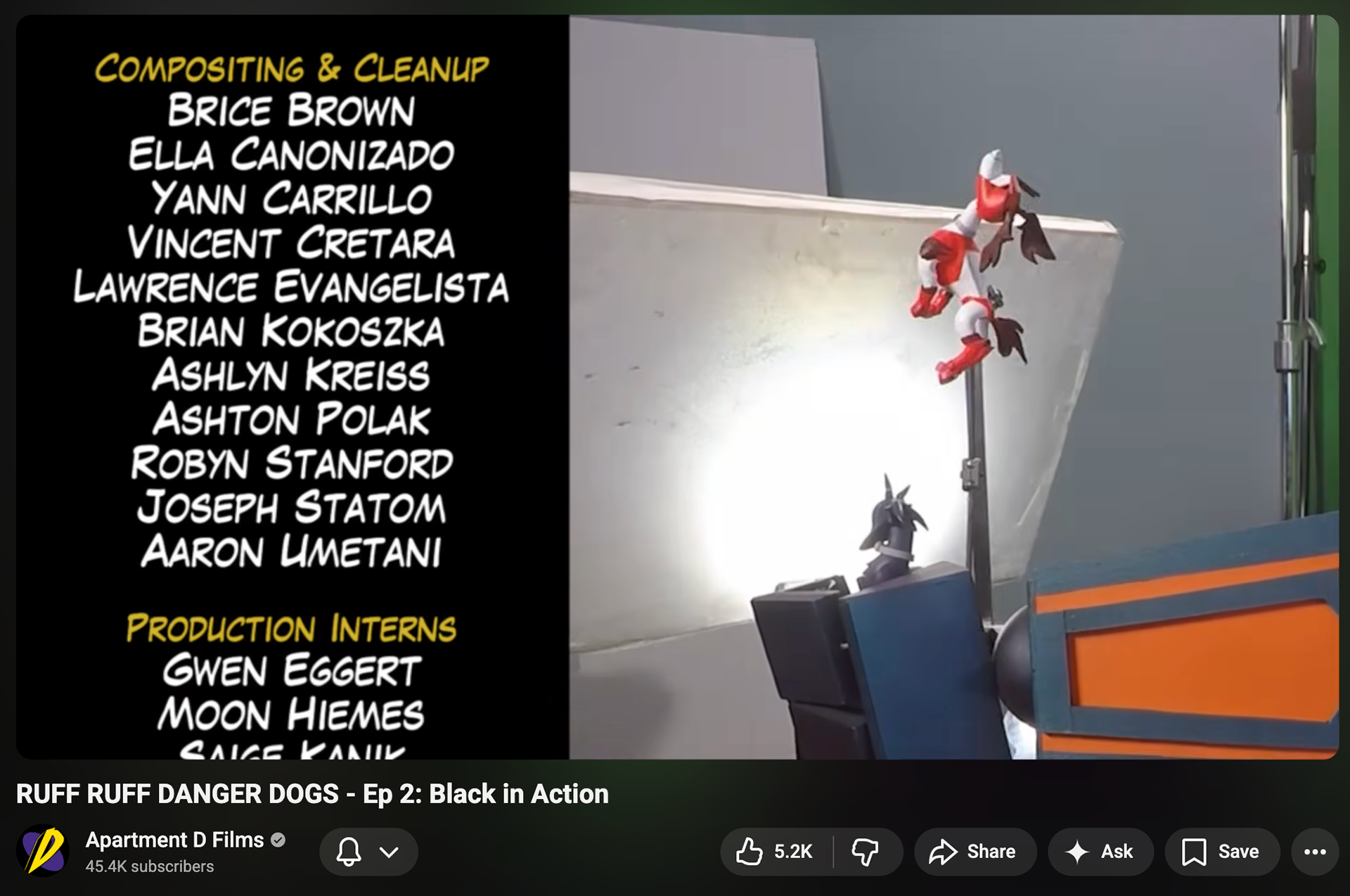 Compositing and cleanup work done for Apartment D's 'RUFF RUFF DANGER DOGS - Ep 2: Black In Action