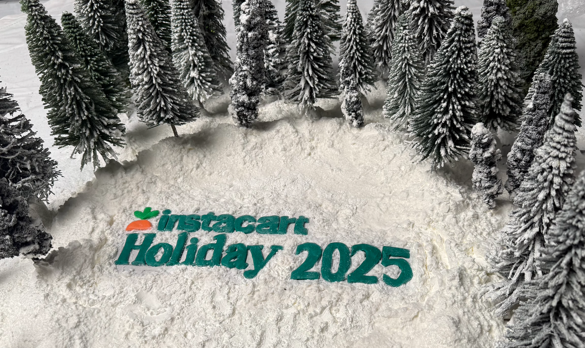 Clay lettering (left image) sculpted for a Starburns Industries pitch deck for Instacart's 2025 Stop-Motion Christmas ads (right image).
